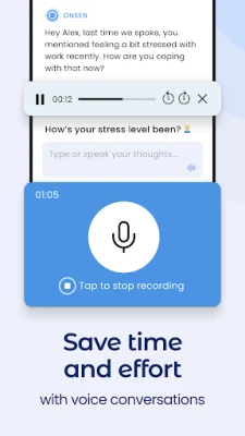 Unlock your thoughts and emotions with Onsen’s intuitive journaling feature. Speak or type, and Onsen captures your reflections while offering personalized insights, helping you grow through self-awareness and mindfulness.