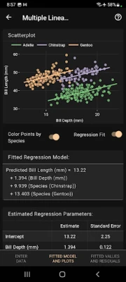 - Display the fitted regression equation on the scatterplot, even when including (and additional) categorical predictor