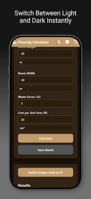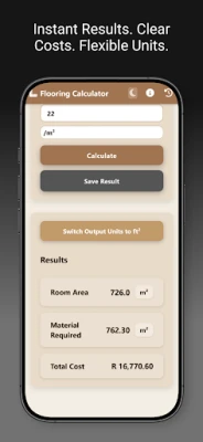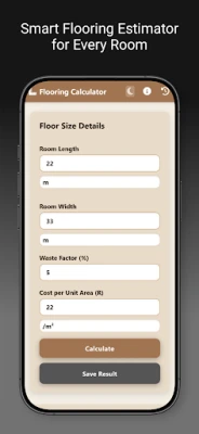 Get accurate flooring measurements in seconds with our modern, user-friendly calculator app. Designed for both DIY users and professionals, it helps you switch units, save results, and stay organized—all with a clean, realistic app feel.