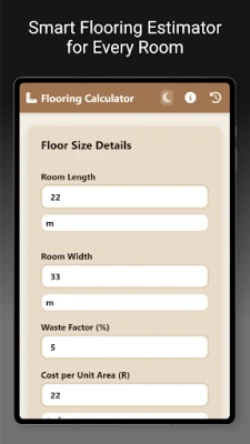 Flooring Calculator: Instantly calculate area from room dimensions.