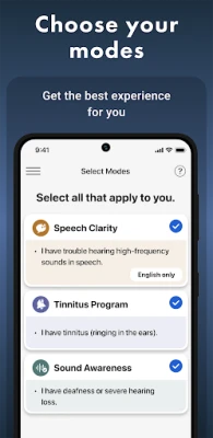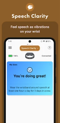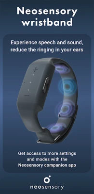 -Speech Clarity: Feel speech as vibrations on your wrist. -Tinnitus Program: Train daily to manage the ringing in your ears. -Sound Awareness: Feel sounds around you – a dog barking, an alarm ringing – as vibrations on your wrist.