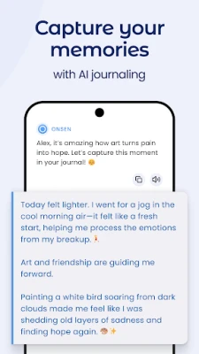 Unlock your thoughts and emotions with Onsen’s intuitive journaling feature. Speak or type, and Onsen captures your reflections while offering personalized insights, helping you grow through self-awareness and mindfulness.