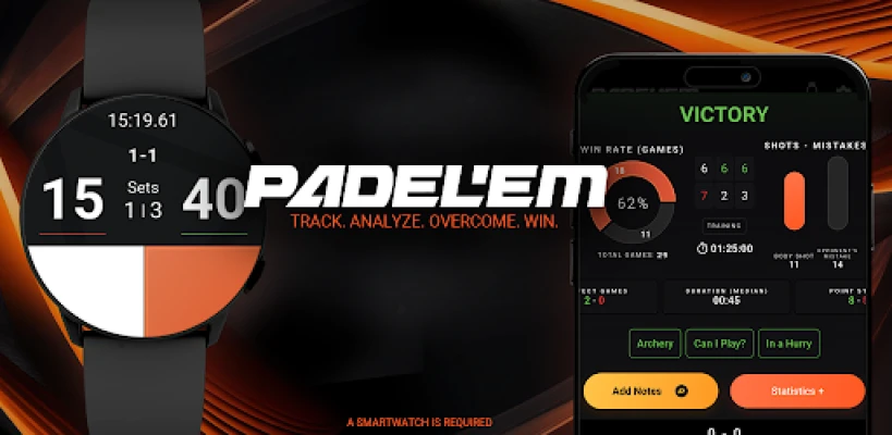 PADEL'EM is the ultimate padel tracker that turns your smartwatch into the brain of your match. We take care of the data so you can focus on one thing: winning the next point.
