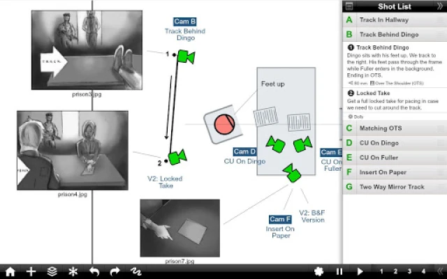 • SHOT LIST - The integrated Shot List is tied into the diagram and writes itself while you work. Edit shots intuitively in the diagram, not in a confusing spreadsheet.