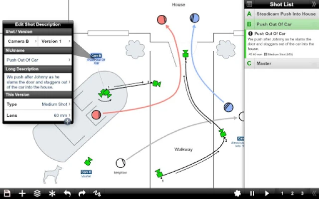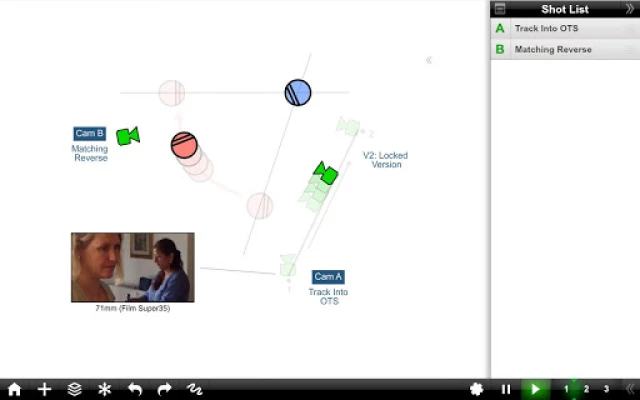 Shot Designer is a ground-breaking tool for Directors and DPs that creates Animated Camera Diagrams, with integrated Shot List, Storyboards, Professional Director's Viewfinder, and Sync & Team Sharing via the Hollywood Camera Work cloud at no extra cost.