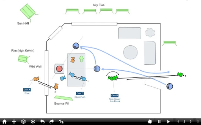 • PDF/JPG/Excel export and emailing of Camera Diagrams and Shot Lists (Pro).