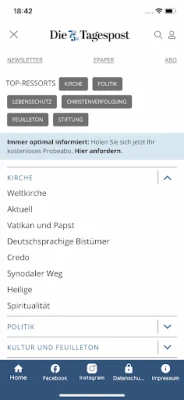 - Die Tagespost in den sozialen Medien verfolgen (Facebook und Instagram).